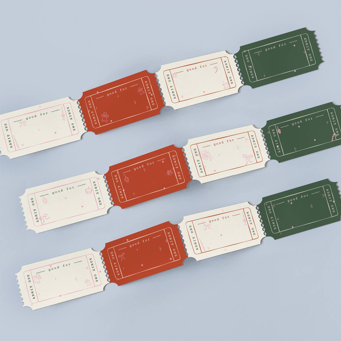 Celebrate the season with this Mini Card of 12 holiday activity coupons, designed for kids and families to enjoy festive, screen-free fun together. Each tear-off ticket reveals a joyful activity like neighborhood light tour, gingerbread party, or cookie decorating contest.